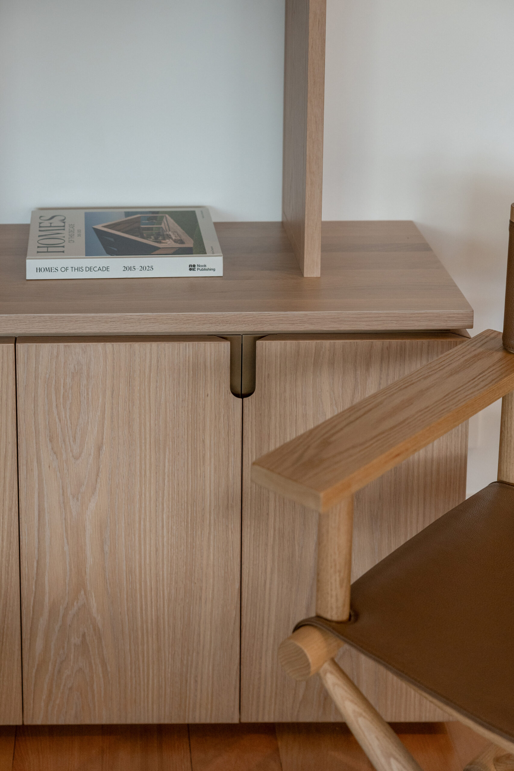 The centerpiece of the room is a bespoke shelving unit, meticulously designed to house and highlight a cherished collection of pottery. By balancing the structured lines of the joinery with layers of soft furnishings, we created a space that feels elevated yet deeply comfortable. The result is a harmonious environment where the new extension feels like a seamless, soulful part of the original villa.