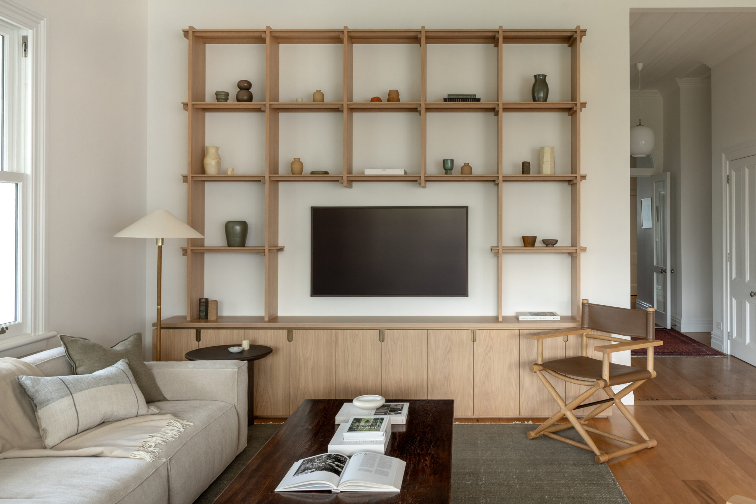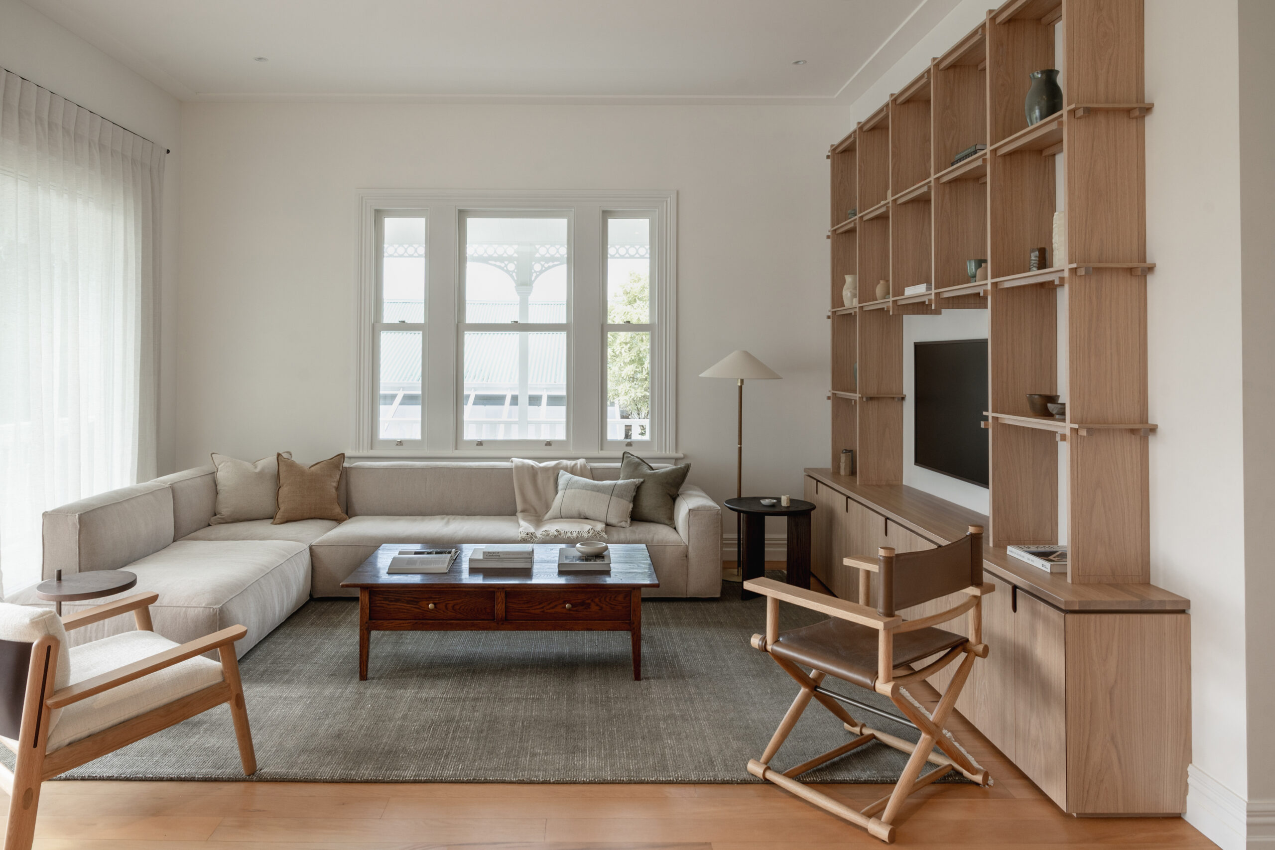 Tasked with completing the final layer of a character villa extension, our focus for the Stanley Point project was to weave personality into the home’s architectural bones. The living room was reimagined as a calm, tactile retreat that celebrates both heritage and the homeowner’s personal story.